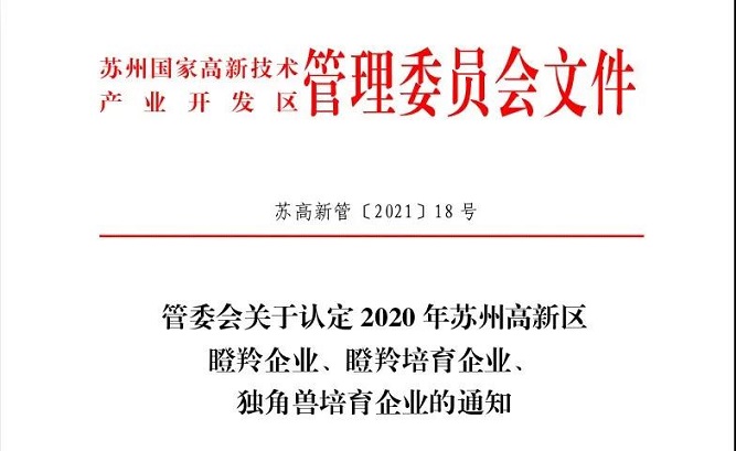 近日,蘇州高新區管委會發布了2020年瞪羚企業、瞪羚培育企業、獨角獸培育企業認定企業名單。虎丘影像榮獲蘇州高新區六家獨角獸培育企業之一。