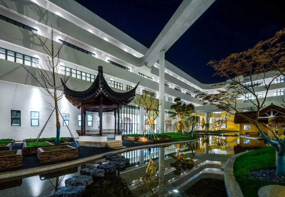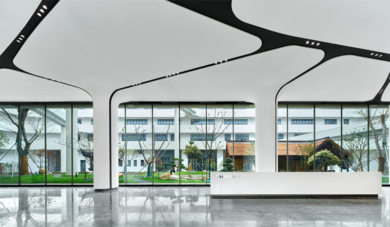 虎丘影像新總部基地建筑為地下一層,地上四層,總建筑面積達46418平方米。在建筑的中部采用了中國傳統建筑中“四水歸堂”建筑文化的布局設計,體現出虎丘影像在不斷追求科技創新的同時,始終秉承人與自然和諧共存的發展理念,同時整棟建筑簡約智能、低碳節能、自然和諧的建筑設計理念,以及屋頂分布式光伏電站、數字化能源管理平臺,智慧照明、空調控制系統,新能源車輛高速充電站等高標準配置,可滿足虎丘影像未來20年,在國家綠色低碳政策要求下的發展需求。