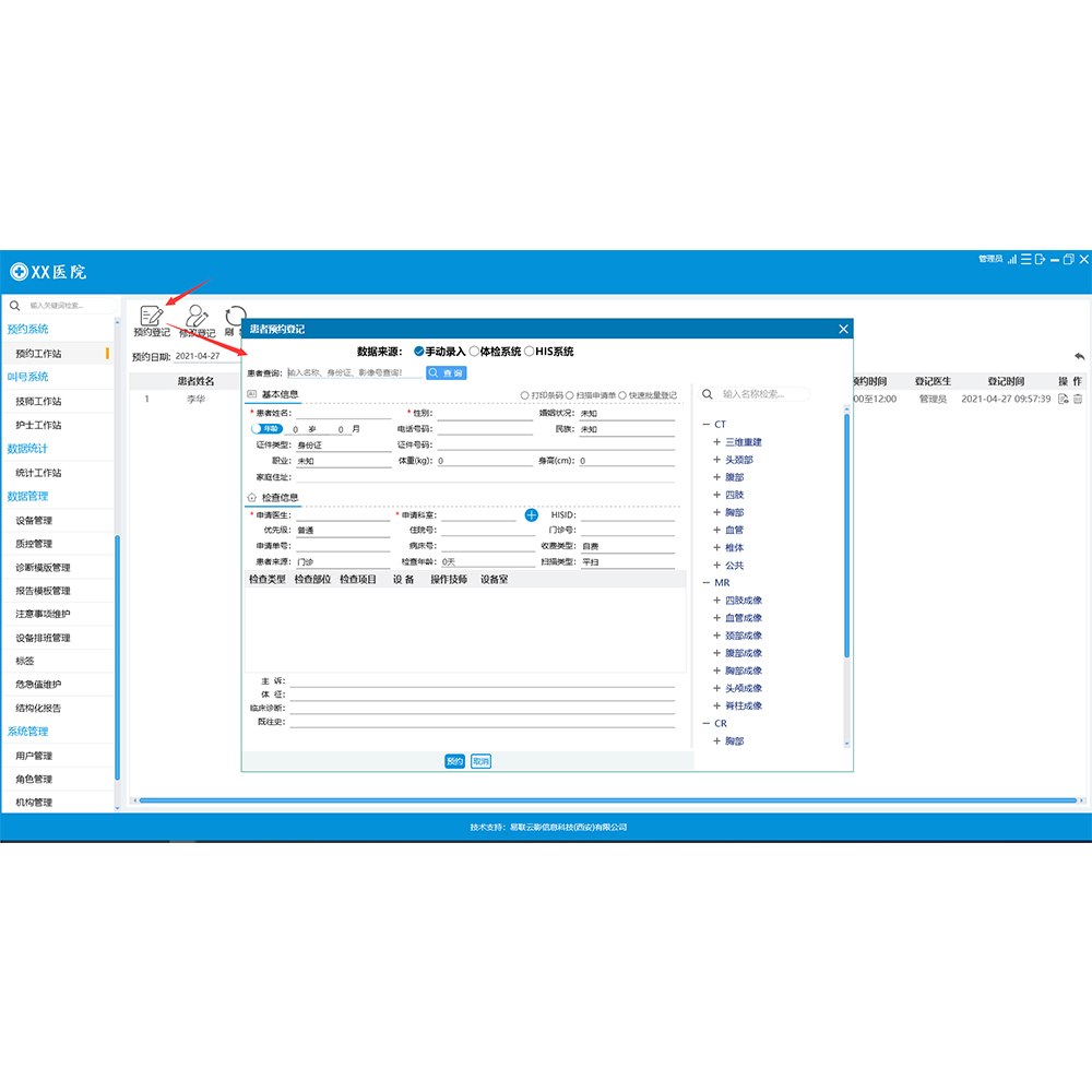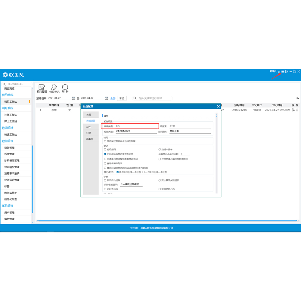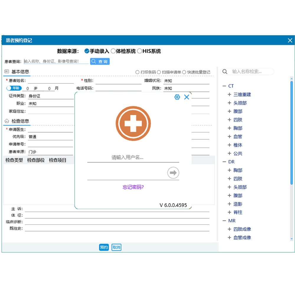 主要功能:門診預約、住院預約、批量預約、特殊預約、項目維護、資源與排版維護。